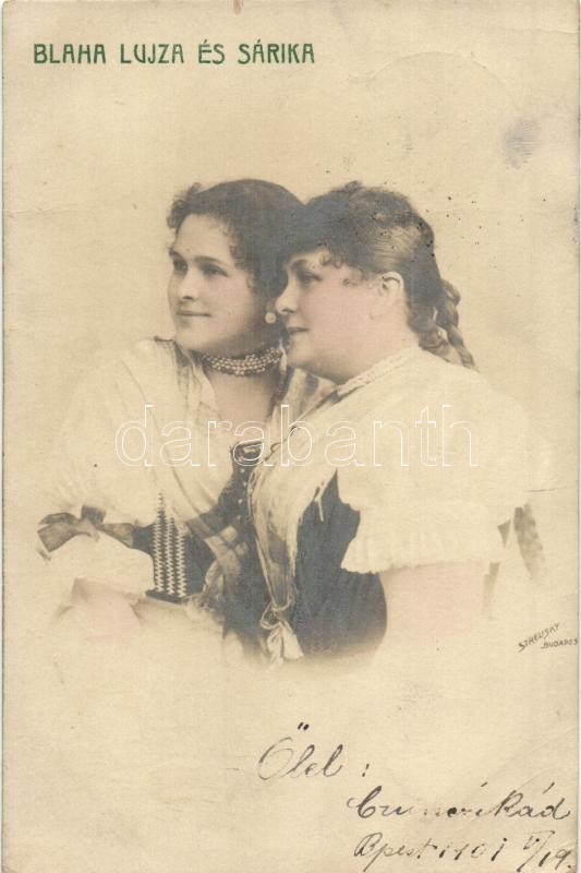 2 db régi színésznő motívumlap: Blaha Lujza és Sárika, Hegyi Aranka / ... https://www.darabanth.com/de/312-Fernauktion/312.0/Ansichtskarten/Schauspieler-Schauspielerin~500045/2-db-regi-szineszno-motivumlap-Blaha-Lujza-es-Sarika-Hegyi-Aranka-2-pre-1945-Hungarian-ac~II1705607