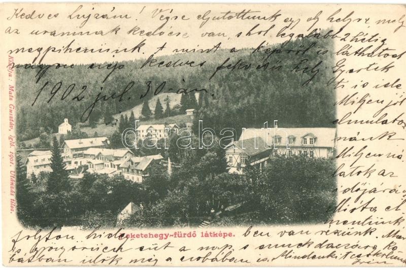 Beschreibung: Feketehegy-fürdő, Merény, Nálepkovo; nyaralók. Matz Gusztáv kiadása / villas