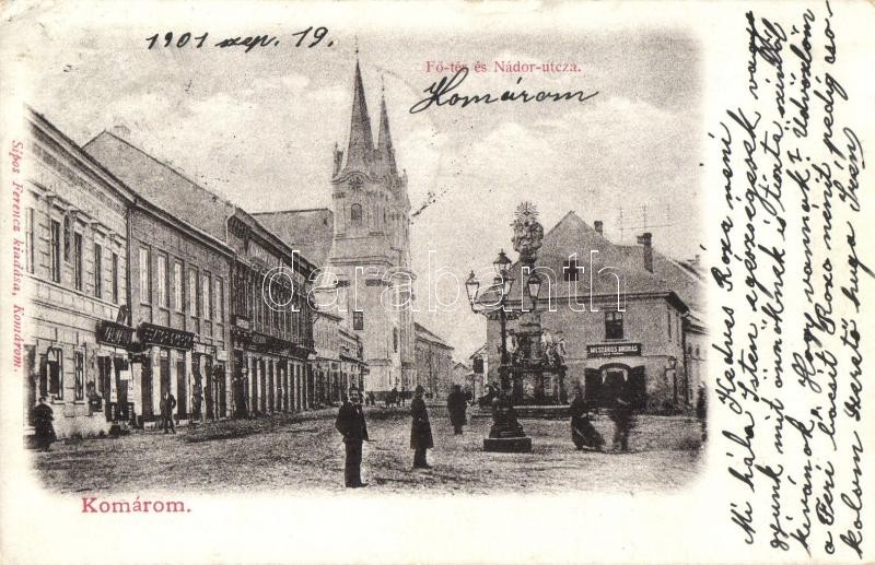 Komárom, Komárno; Fő tér és Nádor utca, Mészáros András és Fektor Györ... https://www.darabanth.com/de/312-Fernauktion/312.0/Ansichtskarten/Slowakei~500008/Komarom-Komarno-Fo-ter-es-Nador-utca-Meszaros-Andras-es-Fektor-Gyorgy-uzletei-Sipos-~II1706315
