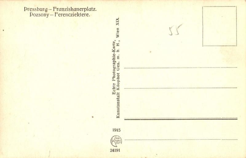 Pozsony, Pressburg, Bratislava; Franziskanerplatz / Ferenciek tere, Ho... https://www.darabanth.com/de/312-Fernauktion/312.0/Ansichtskarten/Slowakei~500008/Pozsony-Pressburg-Bratislava-Franziskanerplatz-Ferenciek-tere-Holub-Janos-uzlete-square-s~II1710062