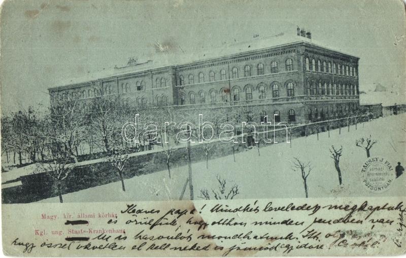 Pozsony, Pressburg, Bratislava; M. kir. állami kórház. Tusky J. Fiai k... https://www.darabanth.com/de/312-Fernauktion/312.0/Ansichtskarten/Slowakei~500008/Pozsony-Pressburg-Bratislava-M-kir-allami-korhaz-Tusky-J-Fiai-korhazi-fehernemuszallC3~II1712197