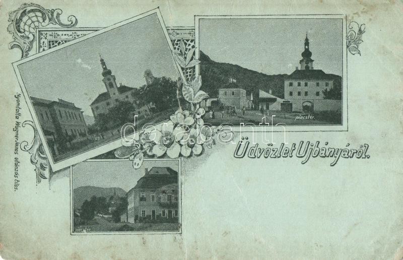 Beschreibung: Újbánya, Nova Bana, Königsberg; Piac tér, templom. Wagner János kiadása / market square, church. floral Art Nouveau (fa)