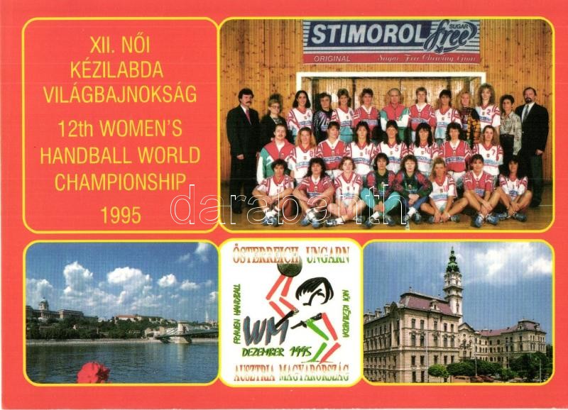 2 db modern sport motívumlap: 1995 A magyar kézilabda válogatott csapat a XII. Világbajnokságon, 1986 évi magyar kosárlabda bajnok csapat Körmendi Dózsa MTE / 2 modern sport motive cards: Hungarian national handball team, Hungarian basketball team