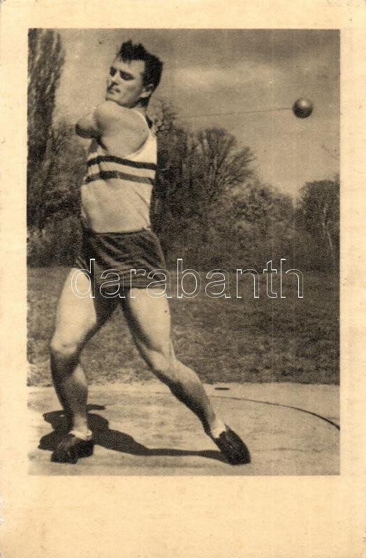 Kalapácsvetés. Előlengetés, Csermák József olimpiai bajnok. Képzőművés... https://www.darabanth.com/de/312-Fernauktion/312.0/Ansichtskarten/Sport~500043/Kalapacsvetes-Elolengetes-Csermak-Jozsef-olimpiai-bajnok-Kepzomuveszeti-Alap-kiadasa-~II1710758
