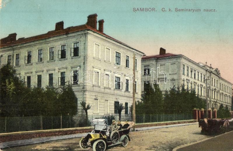 Sambir, Sambor; C. k. Seminaryum naucz / teaching seminar, automobile ... https://www.darabanth.com/de/312-Fernauktion/312.0/Ansichtskarten/Ukraine~500097/Sambir-Sambor-C-k-Seminaryum-naucz-teaching-seminar-automobile-EK~II1705642