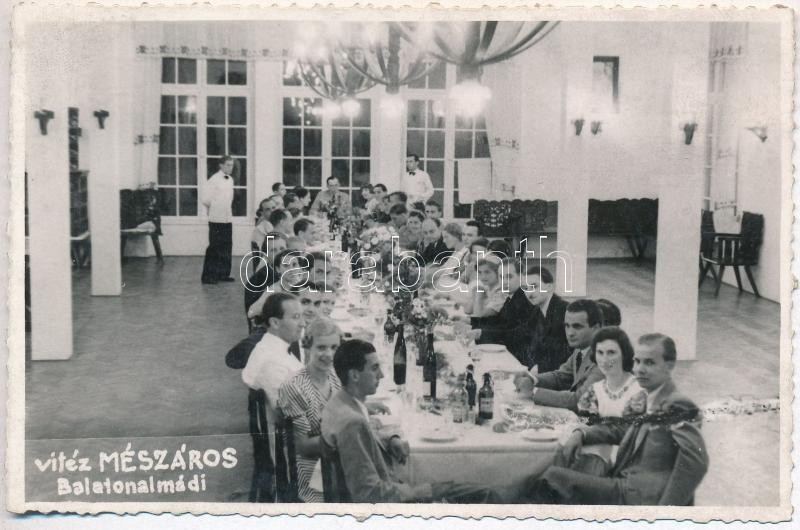 Balatonalmádi, Étterem belső, vendéglő, pincérek. Vitéz Mészáros photo https://www.darabanth.com/de/312-Fernauktion/312.0/Ansichtskarten/Ungarn~500006/Balatonalmadi-Etterem-belso-vendeglo-pincerek-Vitez-Meszaros-photo~II1711145