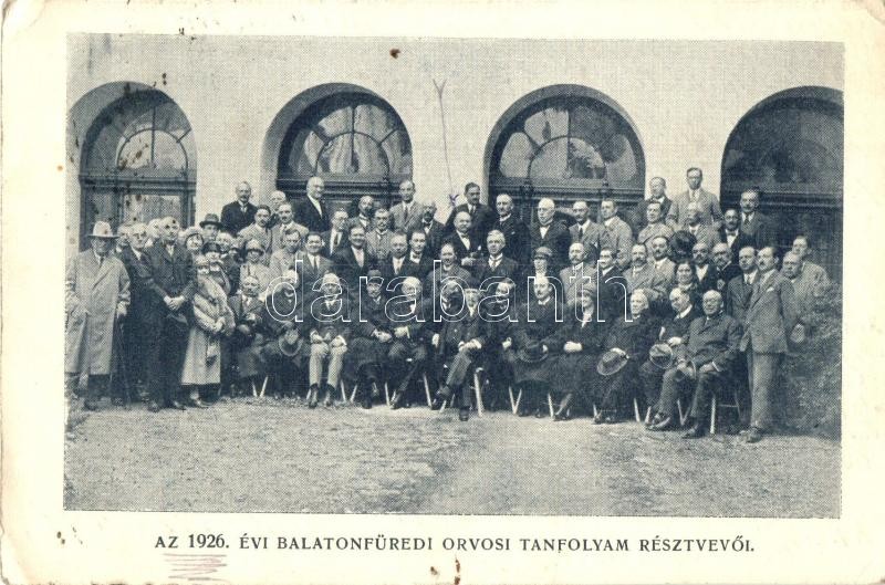 Balatonfüred, az 1926. évi orvosi tanfolyam résztvevői, csoportkép. St... https://www.darabanth.com/de/312-Fernauktion/312.0/Ansichtskarten/Ungarn~500006/Balatonfured-az-1926-evi-orvosi-tanfolyam-resztvevoi-csoportkep-Studentica-lyukak-holes~II1708663