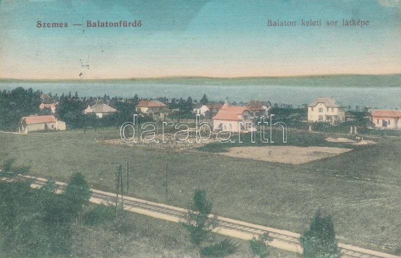 Beschreibung: Balatonszemes, Balaton keleti sor látképe, villák. Kohn Miksa kiadása (EK)