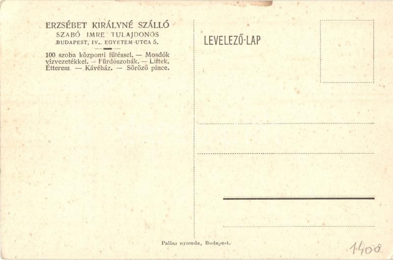 Budapest V. Egyetem utca 5. Hotel Erzsébet Királyné szálloda, automobi... https://www.darabanth.com/de/312-Fernauktion/312.0/Ansichtskarten/Ungarn~500006/Budapest-V-Egyetem-utca-5-Hotel-Erzsebet-Kiralyne-szalloda-automobilok-uzletek-reklamlap-~II1711718