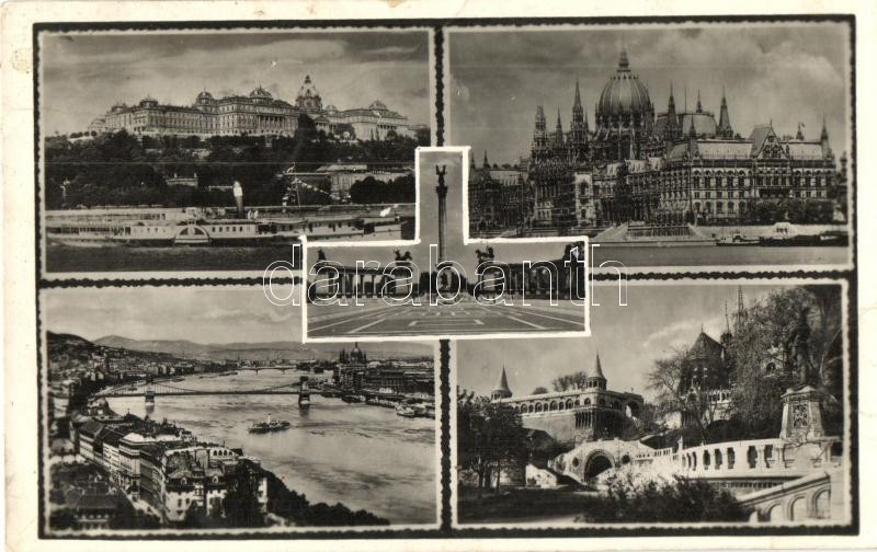 Budapest, mozaiklap: Királyi vár, Országház, Lánchíd, Halászbástya, Hő... https://www.darabanth.com/de/312-Fernauktion/312.0/Ansichtskarten/Ungarn~500006/Budapest-mozaiklap-Kiralyi-var-Orszaghaz-Lanchid-Halaszbastya-Hosok-tere~II1707646