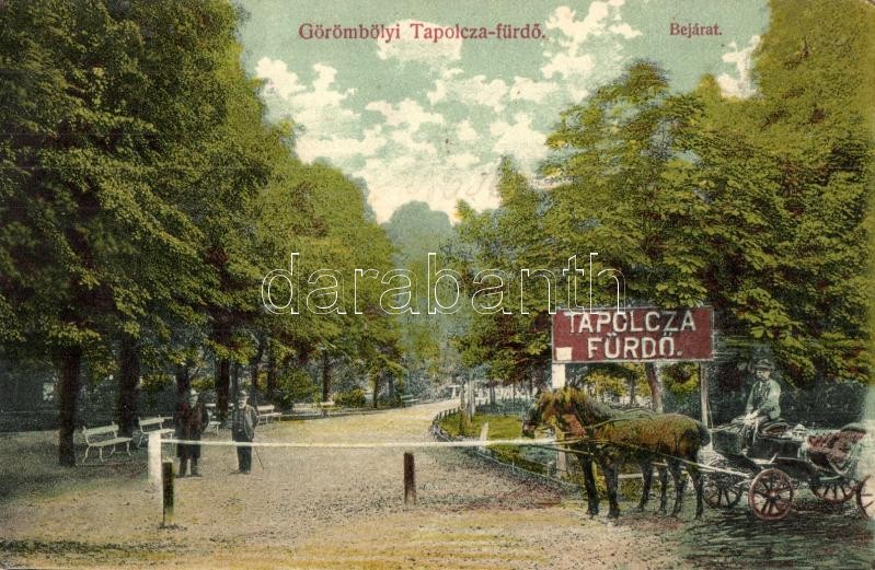 Görömbölyi-Tapolca (Miskolc), fürdő bejárata, lovaskocsi, hintó. Ferec... https://www.darabanth.com/de/312-Fernauktion/312.0/Ansichtskarten/Ungarn~500006/Gorombolyi-Tapolca-Miskolc-furdo-bejarata-lovaskocsi-hinto-Fereczi-B-kiadasa-EK~II1706203