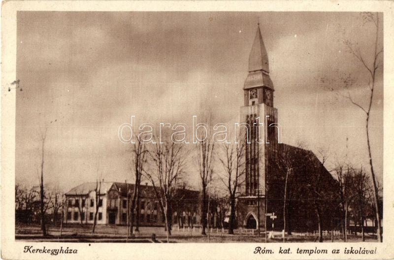 Kerekegyháza, Római katolikus templom, iskola (EK) https://www.darabanth.com/de/312-Fernauktion/312.0/Ansichtskarten/Ungarn~500006/Kerekegyhaza-Romai-katolikus-templom-iskola-EK~II1709157