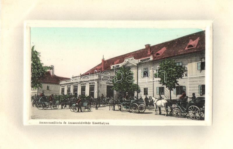 Keszthely, Amazon szálloda és kávéház, hintók. Mérei Ignác kiadása https://www.darabanth.com/de/312-Fernauktion/312.0/Ansichtskarten/Ungarn~500006/Keszthely-Amazon-szalloda-es-kavehaz-hintok-Merei-Ignac-kiadasa~II1609141