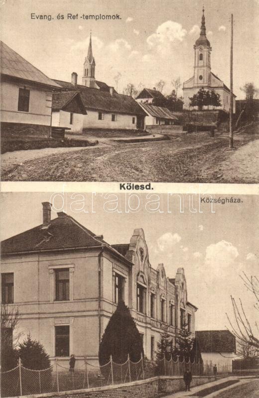 Kölesd, Evangélikus és református templomok, Községháza (EK) https://www.darabanth.com/de/312-Fernauktion/312.0/Ansichtskarten/Ungarn~500006/Kolesd-Evangelikus-es-reformatus-templomok-Kozseghaza-EK~II1711248
