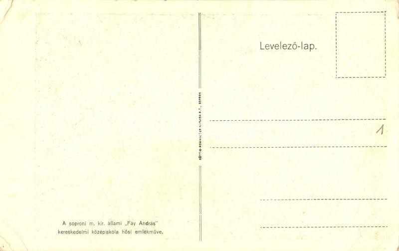 Sopron, A soproni m. kir. állami Fáy András kereskedelmi középiskola h... https://www.darabanth.com/de/312-Fernauktion/312.0/Ansichtskarten/Ungarn~500006/Sopron-A-soproni-m-kir-allami-Fay-Andras-kereskedelmi-kozepiskola-hosi-emlekmuve-EK~II1708645