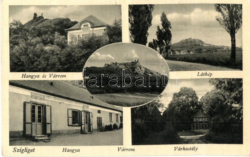 Beschreibung: Szigliget, Várrom és Hangya fogyasztási szövetkezet üzlete, kocsma, Esterházy kastély. Hangya saját kiadása (Rb)