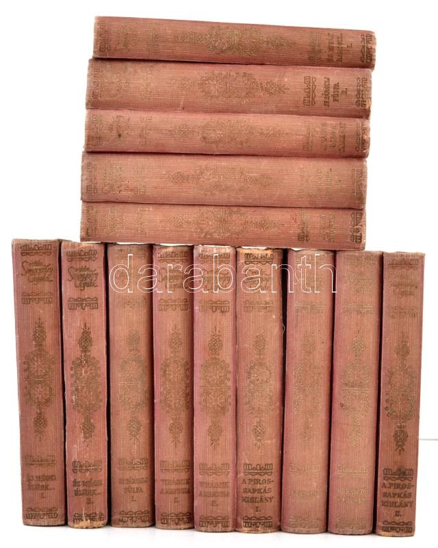Somogyváry Gyula műveinek 14 kötete.Virágzik a mandula I-II. kötet, És Mihály harcolt I-II. kötet, A pirossapkás kislány I-II. kötet, Ne sárgulj fűzfa I-II. kötet, És mégis élünk I-II. kötet., A Rajna ködbevész, A város meg a sárkány, Virrasztó a ködben, Versek. Bp., 1942, Singer és Wolfner. Kiadói félvászon-kötés, kopott borítóval és gerinccel, az egyik kötet borítójának sarka sérült, ragasztott.