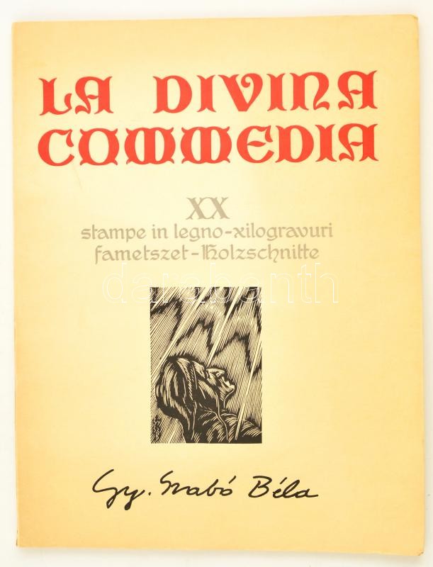 Dante Alighieri: La Divina Commedia. Kolozsvár, 1976, Dacia. Gy. Szabó Béla 20 db fametszetével illusztrált kiadvány. Kiadói papírkötésben, magyar, olasz, román és német nyelven, 43x33 cm, jó állapotban.