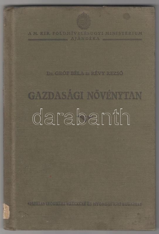 Dr. Gróf Béla-Révy Dezső: Gazdasági növénytan. Gazdasági népkönyvtárak és gazdasági iskolák számára. Bp., 1929, Pátria Irodalmi Vállalat és Nyomdai Rt. Kiadói egészvászon kötésben.