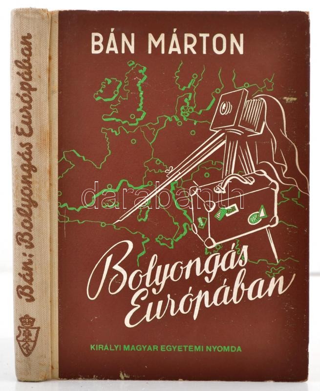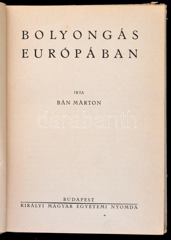 Bán Márton: Bolyongás Európában. Bp.,1944, Kir. Magyar Egyetemi Nyomda. Kiadói félvászon-kötés, kissé kopottas borítóval, a belső kötéstáblák és szennylapok foltosak.