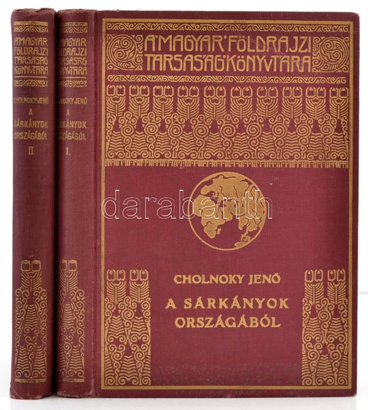 Cholnoky JenÅ‘: A sárkányok országából I-II. kötet. Magyar Földrajzi Társaság Könyvtára. Bp., é. n., Franklin-Társulat. Kiadói aranyozott egészvászon sozozatkötésben, a II. kötet hátsó borÃtója foltos, a gerinceken kis kopással, a II. kötet cÃmlapján rontott számozással, alapvetÅ‘en jó állapotban.