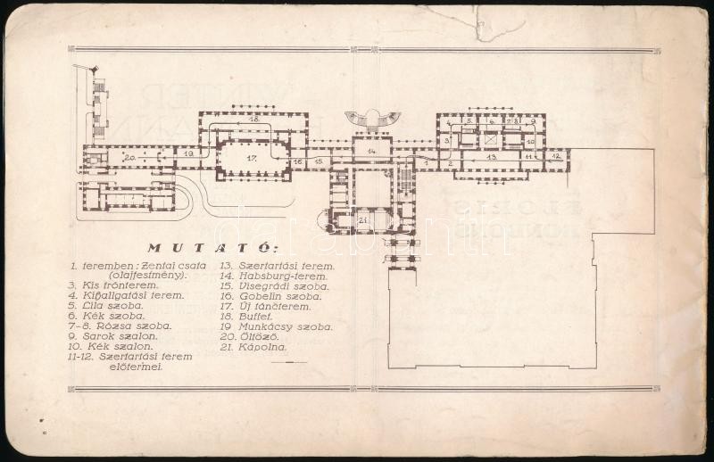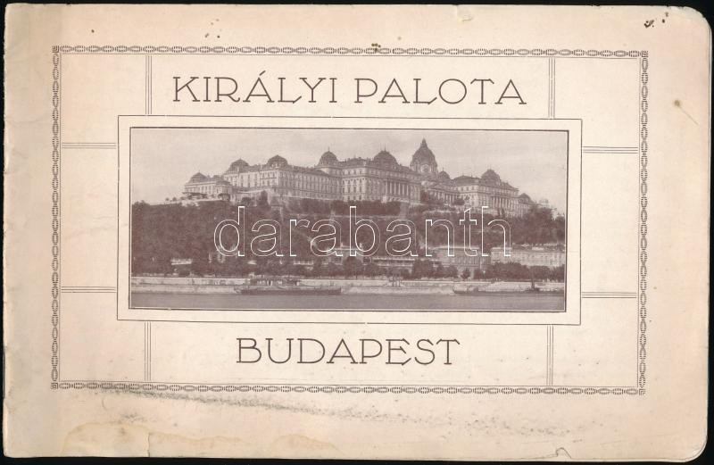 cca 1930 A budai királyi várpalota. Bp., é.n., May János Nyomdai Műintézet Rt., 12 sztl. lev. Fekete-fehér fotókkal, alaprajzzal, korabeli reklámokkal. Kiadói tűzött papírkötés, foltos, kissé szakadt.