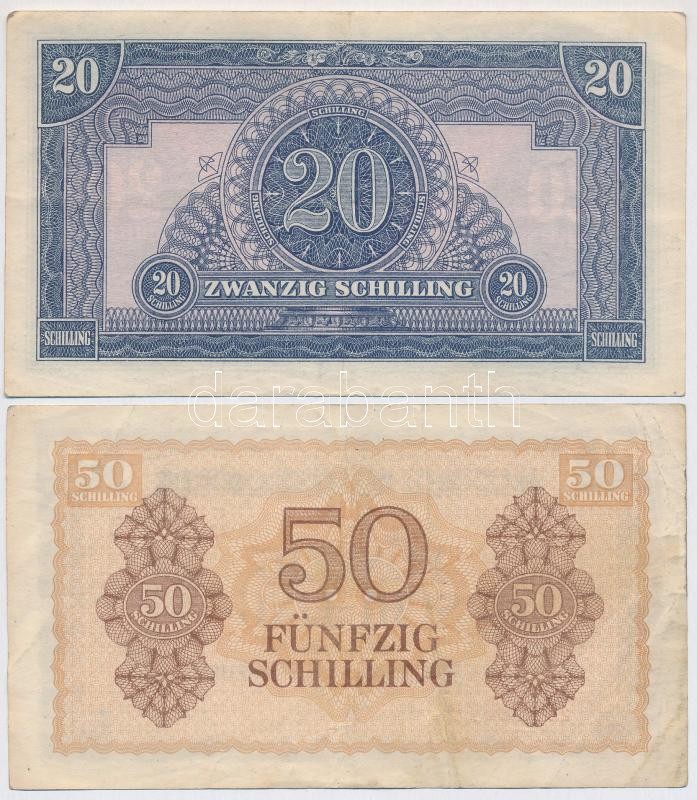 Austria / Allied occupation 1944. 20 Schilling + 50 Schilling C:VF,VG
