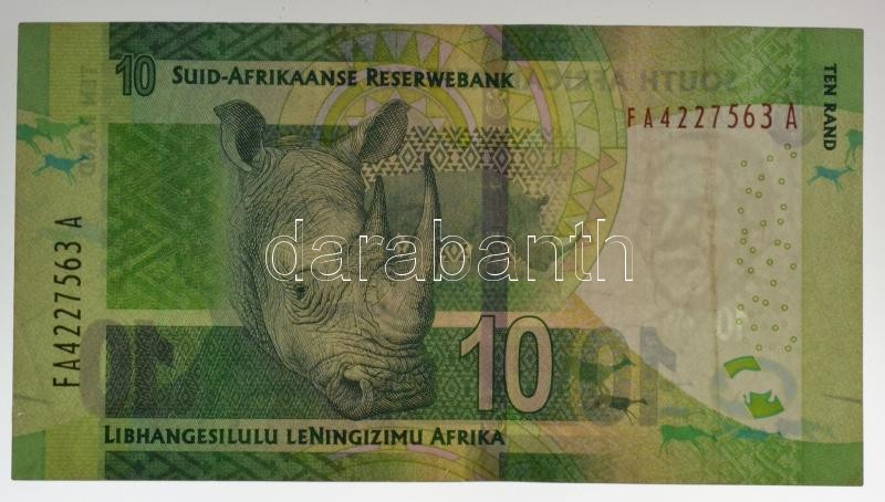 South Africa 2013. 10 Rand C:F https://www.darabanth.com/de/312-Fernauktion/312.0/Numismatik/Weltweit-Banknoten~400012/Del-Afrika-2013-10R-TIII--South-Africa-2013-10-Rand-CF~II1705965
