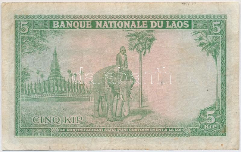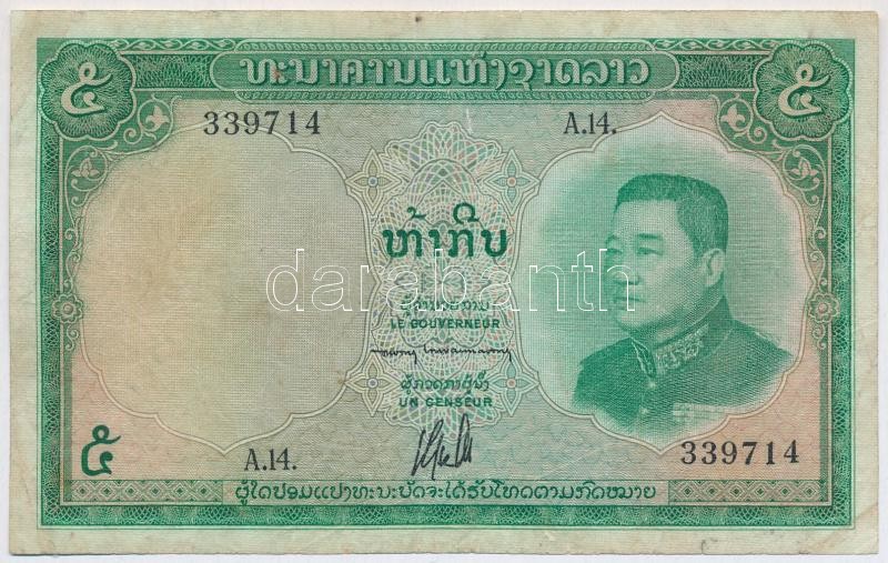 Krause 9b https://www.darabanth.com/de/312-Fernauktion/312.0/Numismatik/Weltweit-Banknoten~400012/Laosz-1962-5K-TIII-III---Lao-1962-5-Kip-CF-VG--Krause-9b~II1705977