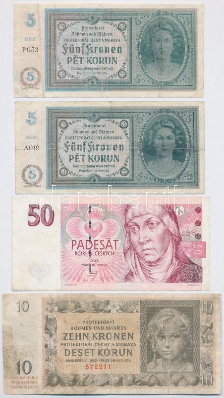 Beschreibung: Német Harmadik Birodalom / Cseh-Morva Protektorátus 1940. 5K + 1942. 10K + Csehország 1997. 50K T:III-,IV