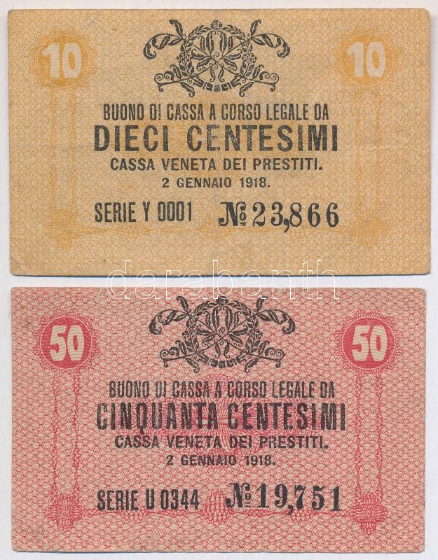 Italy / Venice / Austro-Hungarian Occupation 1918. 10 Centesimi + 50 Centesimi C:F