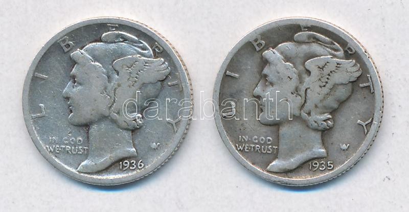 USA 1935. Dime Ag "Mercury" + 1936. Dime Ag "Mercury" C:VF,F patina