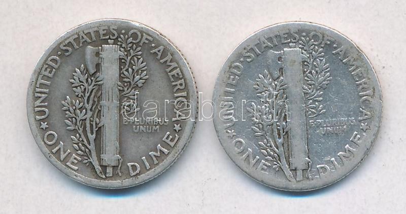 Amerikai Egyesült Államok 1935. 1D Ag "Mercury" + 1936. 1D Ag "Mercury" T:2-,3 patina