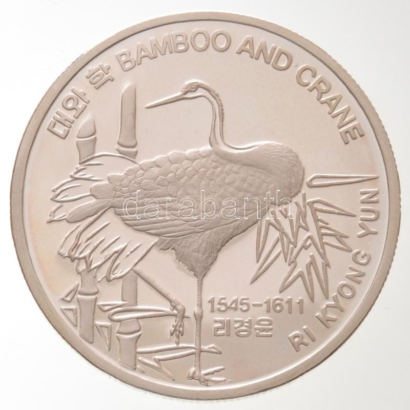 Észak-Korea DN 20W Ag "Bambusz és daru" T:PP