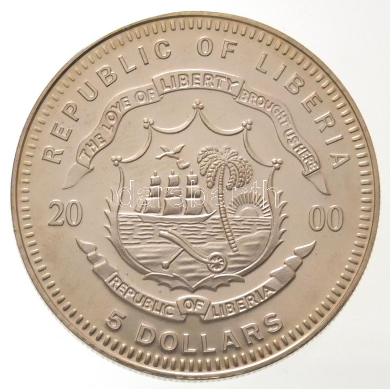Libéria 2000. 5$ ezüstözött Cu-Ni "Oroszlán" multicolor T:1 ... https://www.darabanth.com/de/312-Fernauktion/312.0/Numismatik/Weltweit-Munzen~400013/Liberia-2000-5USD-ezustozott-Cu-Ni-Oroszlan-multicolor-T1-patina--Liberia-2000-5-Dollars-sil~II1709350
