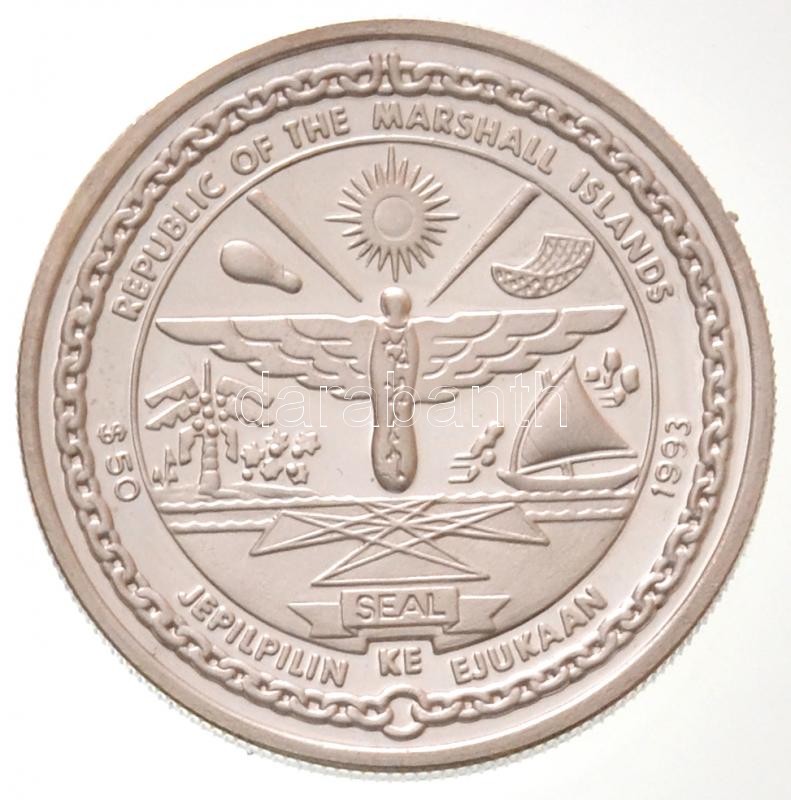 Beschreibung: Marshall-szigetek 1993. 50$ Ag(?) "Palackorrú delfin" T:1(P)