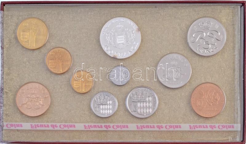 Monaco 1982. 1c-100Fr "III. Rainier" (11xklf) forgalmi sor fóliatokban, tanúsítvánnyal, karton díszdobozban T:1 kis patina