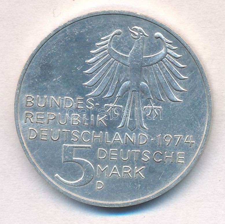 NSZK 1974D 5M Ag "Immanuel Kant születésének 250. évfordulója" T:1- FRG 1974D 5 Mark Ag "200th Anniversary - Birth of Immanuel Kant" C:AU Krause KM#139