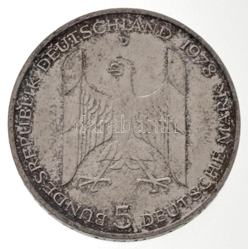NSZK 1978D 5M Ag "Gustav Stresemann" T:2 patina FRG 1978D 5 Mark Ag "Gustav Stresemann" C:XF patina Krause KM#147