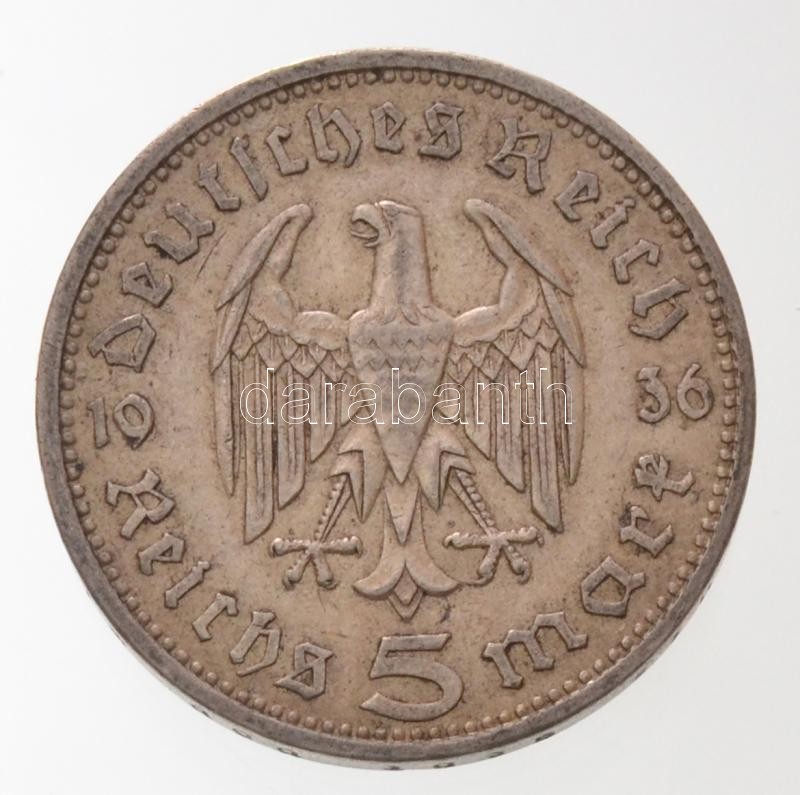 Német Harmadik Birodalom 1936A 5M Ag "Hindenburg" T:2 kis ph... https://www.darabanth.com/de/312-Fernauktion/312.0/Numismatik/Weltweit-Munzen~400013/Nemet-Harmadik-Birodalom-1936A-5M-Ag-Hindenburg-T2-kis-ph---German-Third-Reich-1936A-5-Mark-Ag-~II1711866