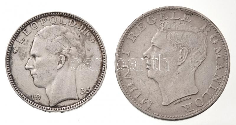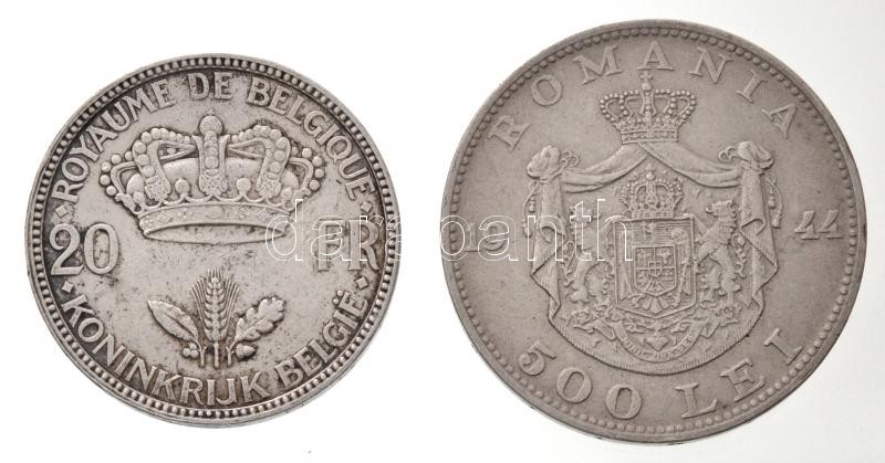 Vegyes: Belgium 1935. 20Fr Ag "III. Lipót" + Románia 1944. 500L Ag "I. Mihály" T:2,2- ragasztónyom, patina, kis ph. Mixed: Belgium 1935. 20 Francs Ag "Leopold III" + Romani 1944. 500 Lei Ag "Mihai I" C:XF,VF gluemark, patina, small edge error Krause KM#105, KM#65