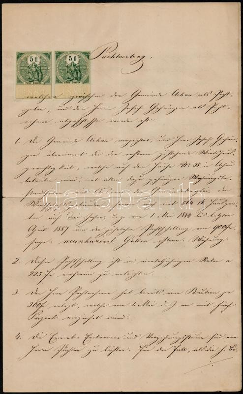 1884 Ausztria szerződés 2 x 5Ft okmánybélyeggel https://www.darabanth.com/de/313-Fernauktion/313.0/Andere-Sammelgebiete/Dokument~18/1884-Ausztria-szerzodes-2-x-5Ft-okmanybelyeggel~II1716649