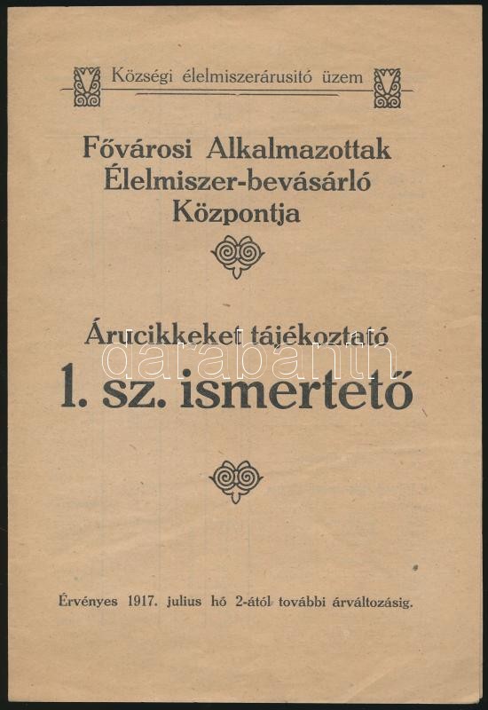1917 A Fővárosi Alkalmazottak Élelmiszer-bevásárló Központja által kia... https://www.darabanth.com/de/313-Fernauktion/313.0/Andere-Sammelgebiete/Drucksachen~29/1917-A-Fovarosi-Alkalmazottak-Elelmiszer-bevasarlo-Kozpontja-altal-kiadott-arucikkekkel-kap~II1717161