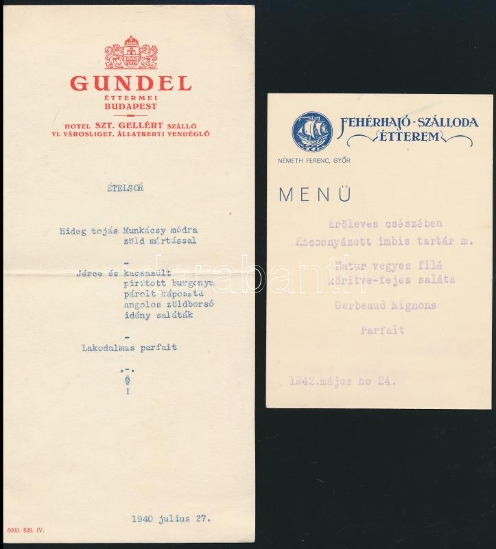 cca 1920-1940 8 db válogatott étlap és menükártya https://www.darabanth.com/de/313-Fernauktion/313.0/Andere-Sammelgebiete/Drucksachen~29/cca-1920-1940-8-db-valogatott-etlap-es-menukartya~II1718148