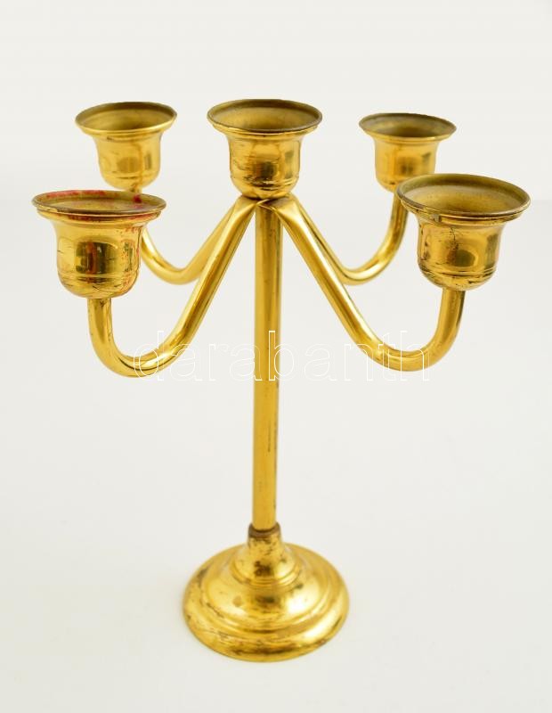 Ötágú fém gyertyatartó, kis deformációval, m: 22 cm https://www.darabanth.com/de/313-Fernauktion/313.0/Andere-Sammelgebiete/Flohmarkt~12/Otagu-fem-gyertyatarto-kis-deformacioval-m-22-cm~II1667789