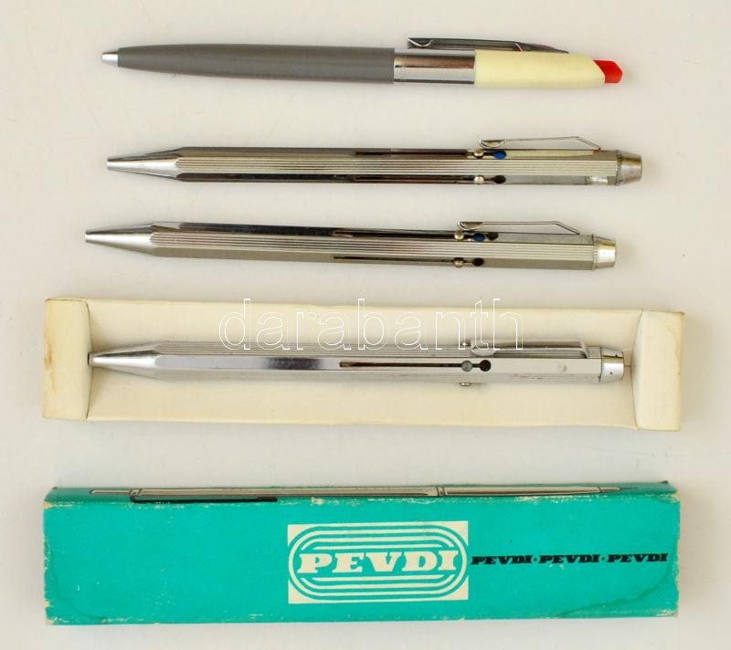 Retró négyszínű tollak, 3 db + 1 retró toll https://www.darabanth.com/de/313-Fernauktion/313.0/Andere-Sammelgebiete/Flohmarkt~12/Retro-negyszinu-tollak-3-db-plus-1-retro-toll~II1718117