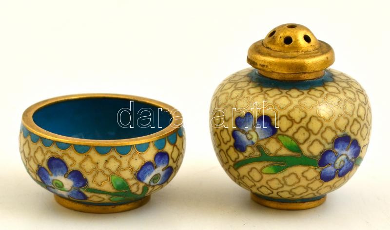 Beschreibung: Zománcozott réz mini tálka és füstölő, d:4 cm, m: 4 cm