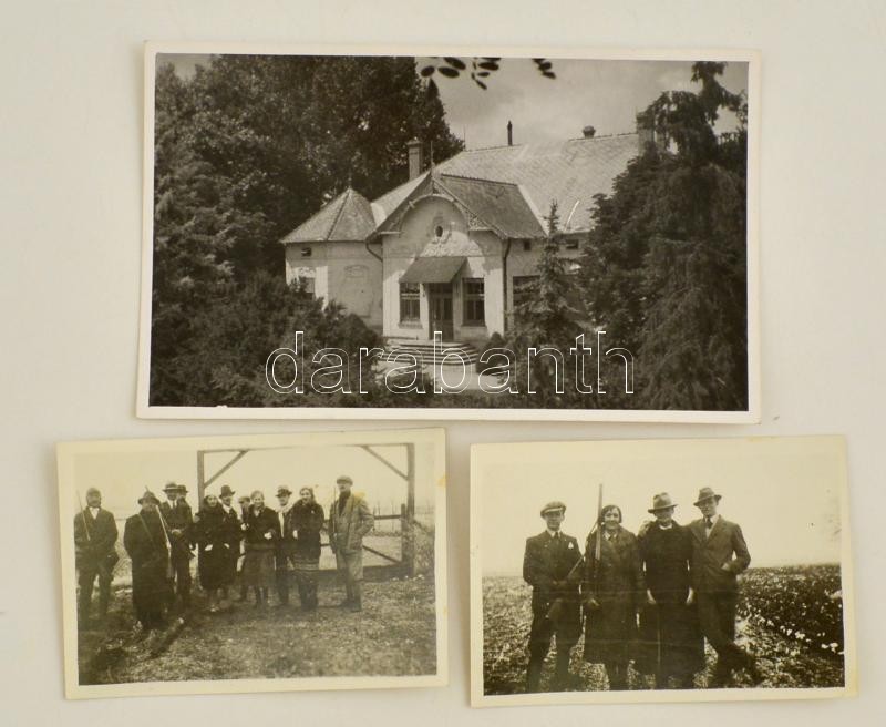 Beschreibung: cca 1930 Székkutas, a helyi birtokos Maczelka család tagjai vadászaton, és egy kúria fényképe 9x14 cm, 6x9 cm
