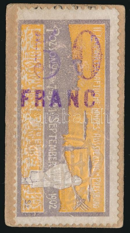 1902 Pozsony II. Mezőgazdasági Országos Kiállítás levélzáró 50 Franc f... https://www.darabanth.com/de/313-Fernauktion/313.0/Andere-Sammelgebiete/Paraphilatelie~15/1902-Pozsony-II-Mezogazdasagi-Orszagos-Kiallitas-levelzaro-50-Franc-felulbelyegzessel~II1684242