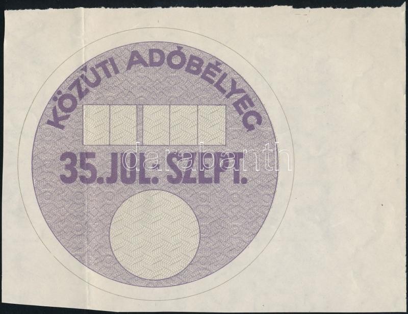1934 Közúti adóbélyeg jóváhagyó minta https://www.darabanth.com/de/313-Fernauktion/313.0/Andere-Sammelgebiete/Stempelmarken~16/1934-Kozuti-adobelyeg-jovahagyo-minta~II1718001